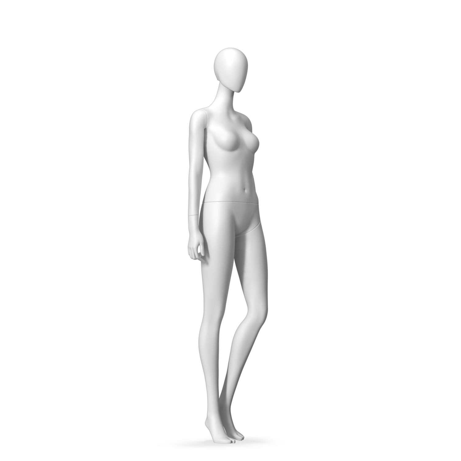 The Female Radiant Nude is finished in C8 white matte paint. She has a detachable 360˚ Egg Head with a NO-GAP design. Different head options can be ordered seperately. A 42cm Round Glass Base with a Silver Chrome Upright & Calf Pin is included.