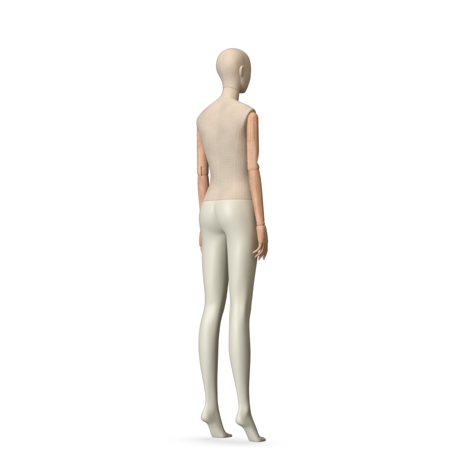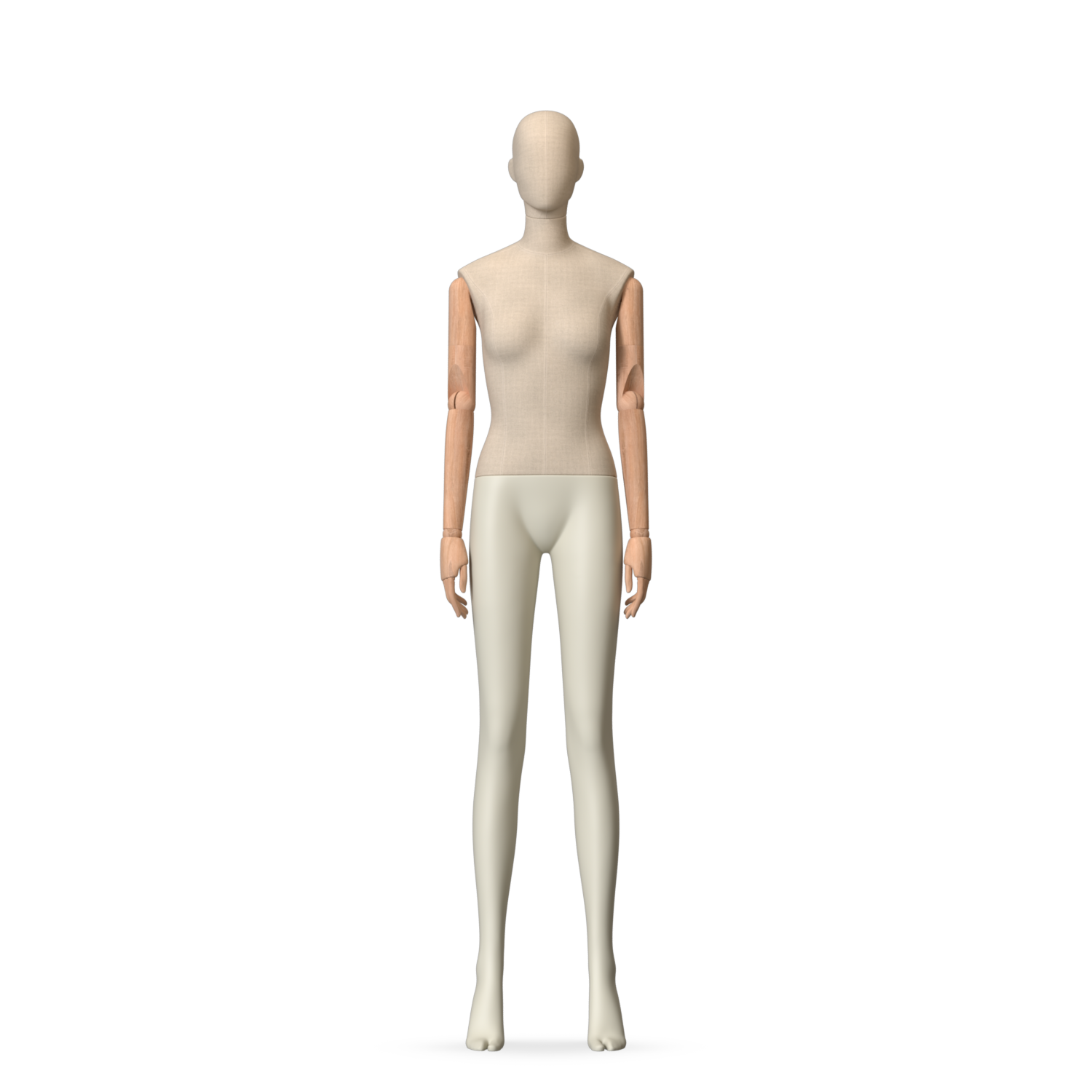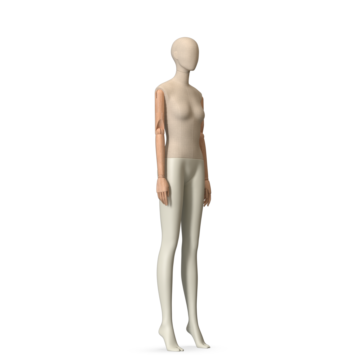 The Female Canvas Articulated has a body with Amjf 643 Canvas Linnen,Pantone 9225C matte legs and Natural Wood articulated arms with Non-Art fingers.